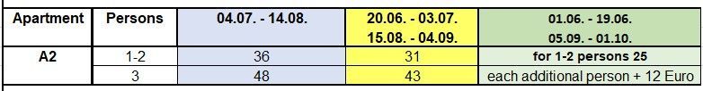Apartment A2für 1 - 3 Personen