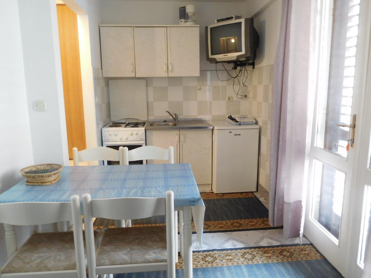 Situé au deuxième étage, il peut accueillir jusqu'à 6 personnes. D'une superficie totale de 51 m², il est divisé en 3 pièces : un salon de 11 m², deux chambres (10 m² chacune) et une salle de bain de 3,5 m². Il dispose de deux balcons privés avec vue sur la mer. Les chambres sont toutes équipées d'un lit double. Le salon dispose d'un grand canapé-lit, d'une télévision par satellite, d'une table et de chaises, ainsi que d'une kitchenette équipée d'un réfrigérateur-congélateur, de 4 plaques de cuisson électriques et d'un four. La salle de bain est équipée d'une douche et de toilettes. La climatisation est disponible moyennant un supplément. L'appartement est équipé de la climatisation, qui peut être réservée séparément (5 € par jour).