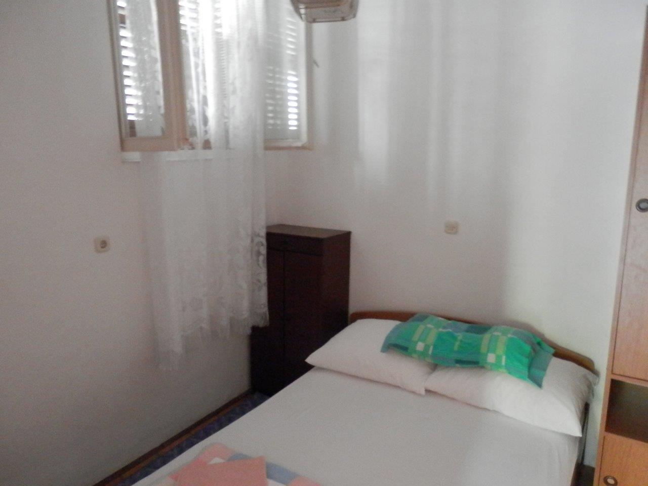 Nachádza sa na prvom poschodí a je vybavený pre maximálne 4 osoby. Celková obytná plocha je 37 m²; je rozdelená na 3 izby: obývaciu izbu s rozlohou 8,5 m², 2 spálne (každá s rozlohou 9 m²) a kúpeľňu s rozlohou 3 m². Má tiež súkromný balkón s výhľadom na more. Spálne sú vybavené manželskou posteľou. Obývacia izba je vybavená satelitnou TV, stolom a stoličkami a kuchynským kútom s chladničkou a mrazničkou, 2 plynovými a 2 elektrickými varnými doskami a rúrou. Kúpeľňa má sprchovací kút a WC. Apartmán má klimatizáciu, ktorú je možné rezervovať samostatne (5 € na deň).